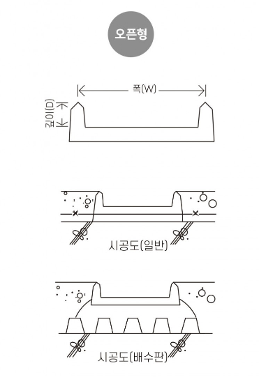 건물 내/외부의 소형배수로 형성에 적합한 제품