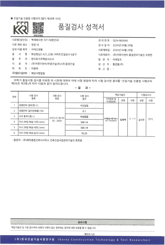 품질검사 성적서