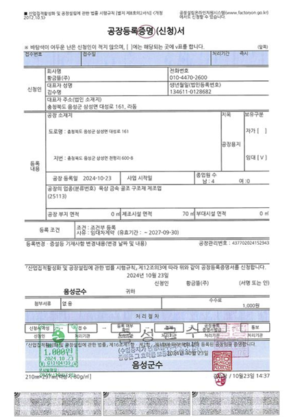 공장등록증명서